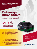 Гайковерт аккумуляторный ROSSVIK RIW1000/1 (1/2", 1000 Нм, 21 В, 1,9 кг, 1 АКБ, ЗУ, кейс)(0)
